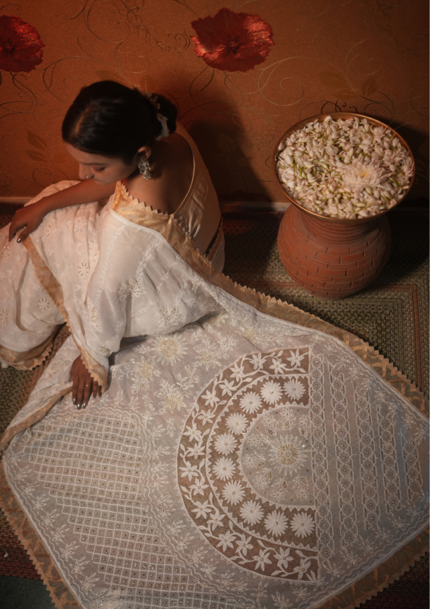 Most exclusive hand-embroidered designer wear by Manju Jalota. Explore our latest collection of Chikankari Sarees & Suits.
