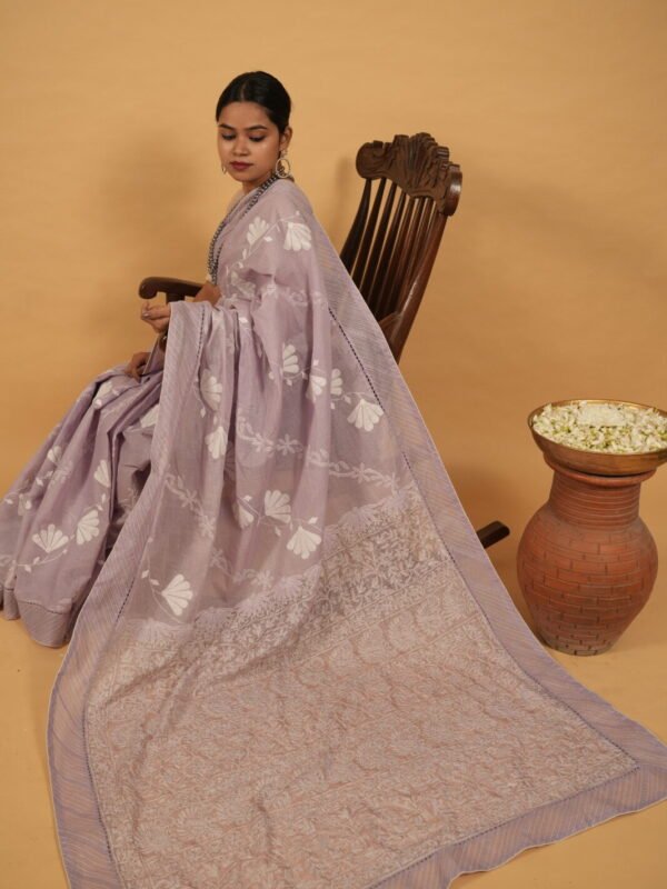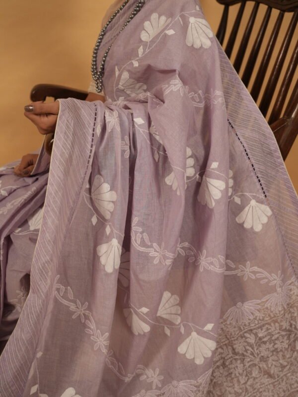 Purple cotton saree with handmade embroidery