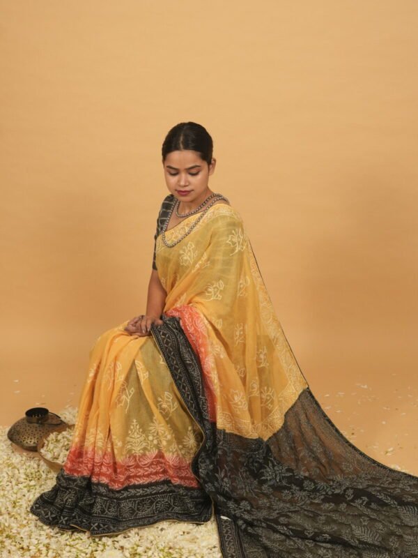 Yellow saree with Gota work and tapechi – Bakhiya border