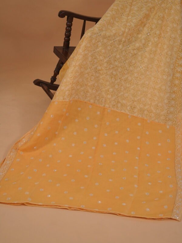 White Organza saree with cutwork and tapechi