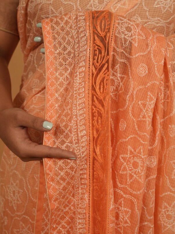 Mave kota saree with light zardozi tapechi embroidery and pintucks border