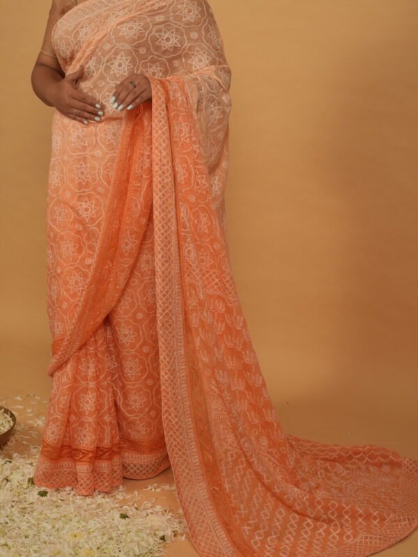 Sky blue Tissue Kota saree with all over handmade chikankari embroidery