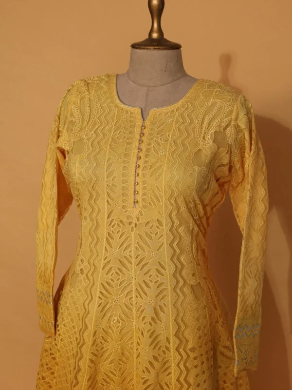 Each Anarkali is made from premium fabrics, ensuring a soft, comfortable fit that flows gracefully. The intricate Chikankari hand embroidery adds a touch of artistry and sophistication, making each piece unique. With flattering silhouettes and delicate detailing, these suits are ideal for women who want to combine classic elegance with modern style.