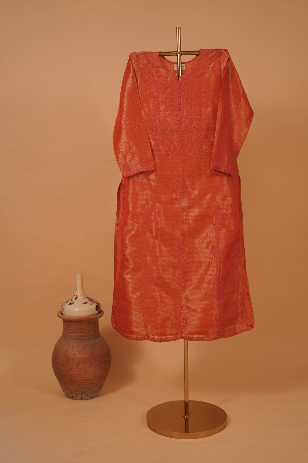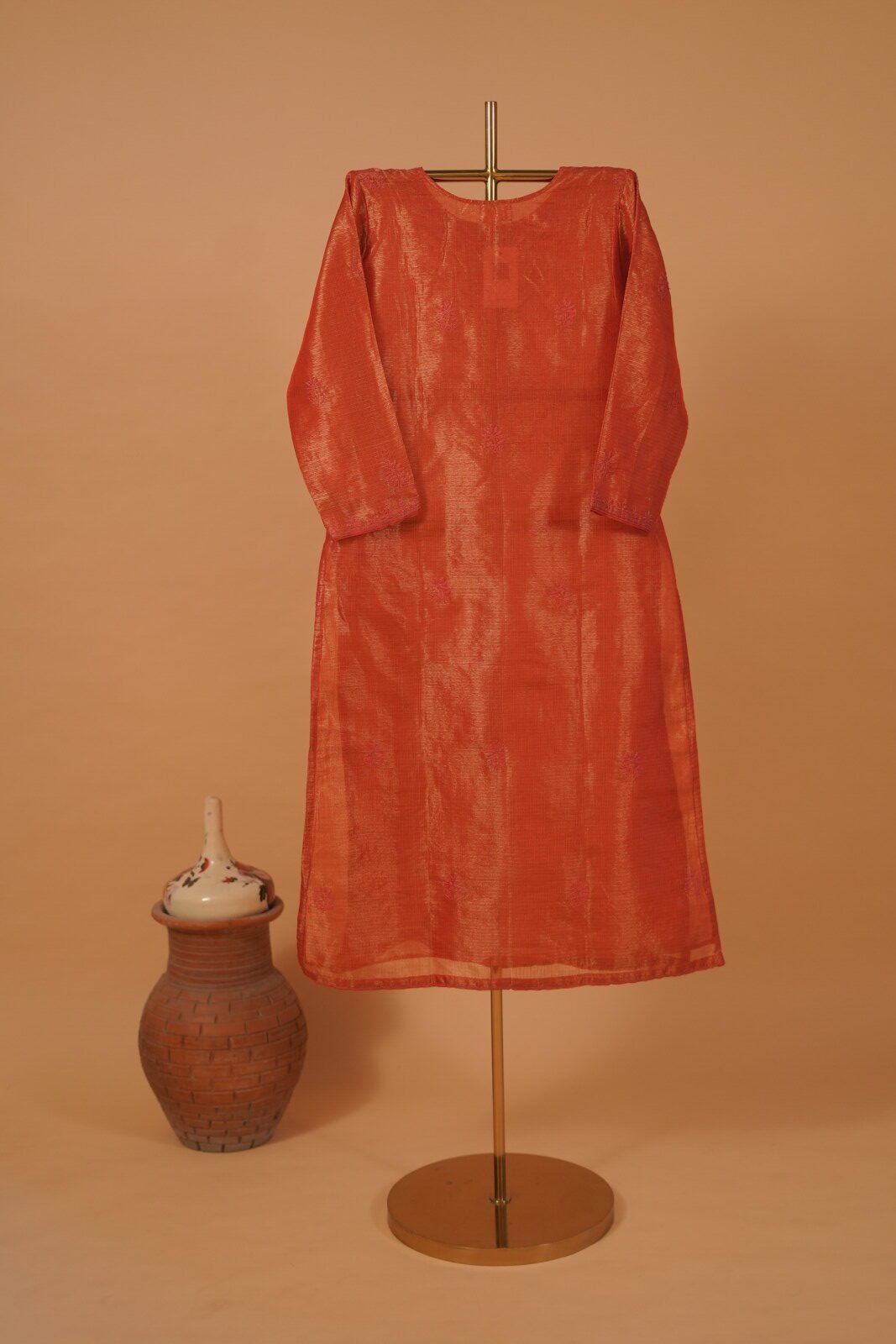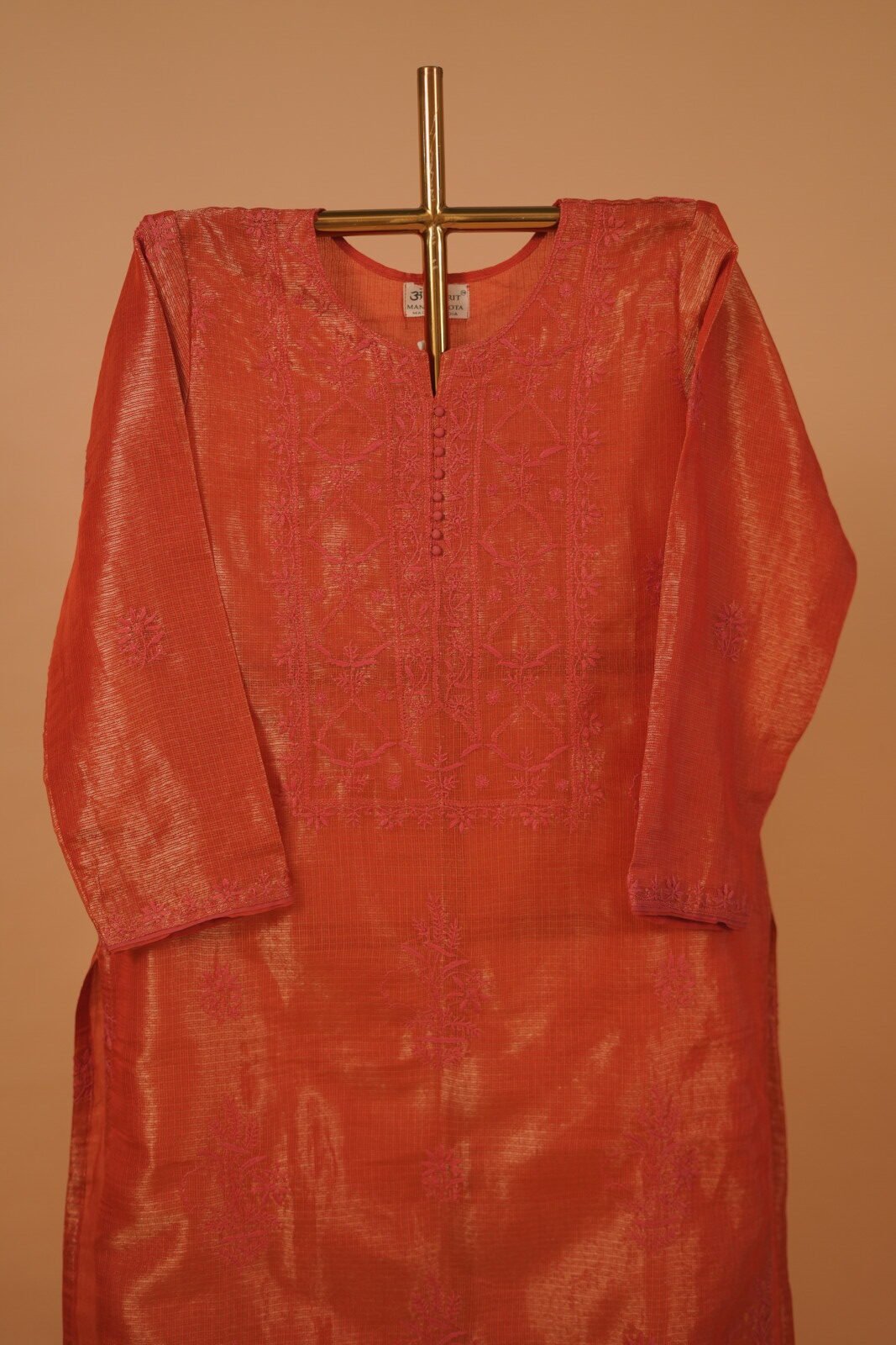 Orange Tissue Semi-Stitched Suit Set with Sequins Embroidery