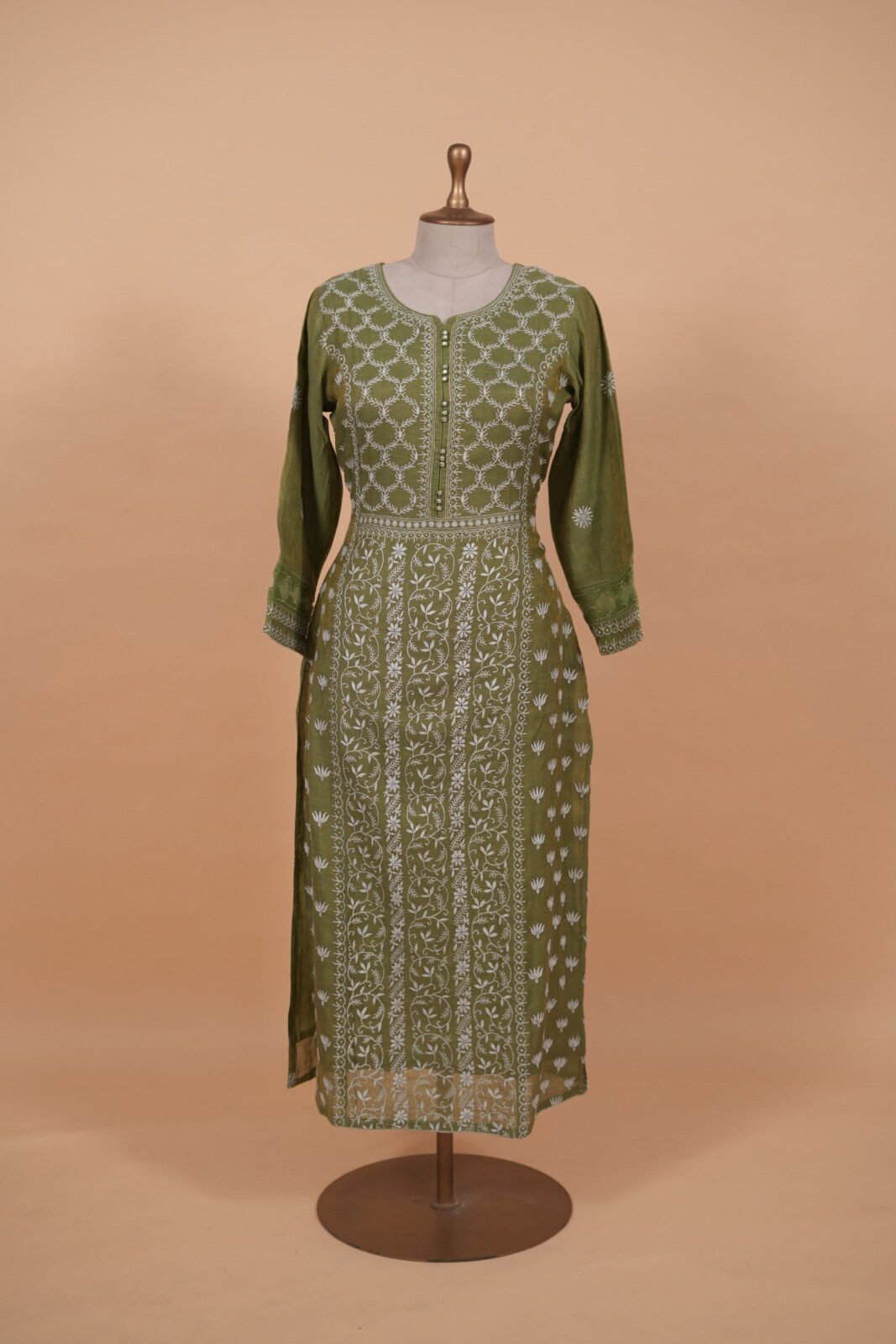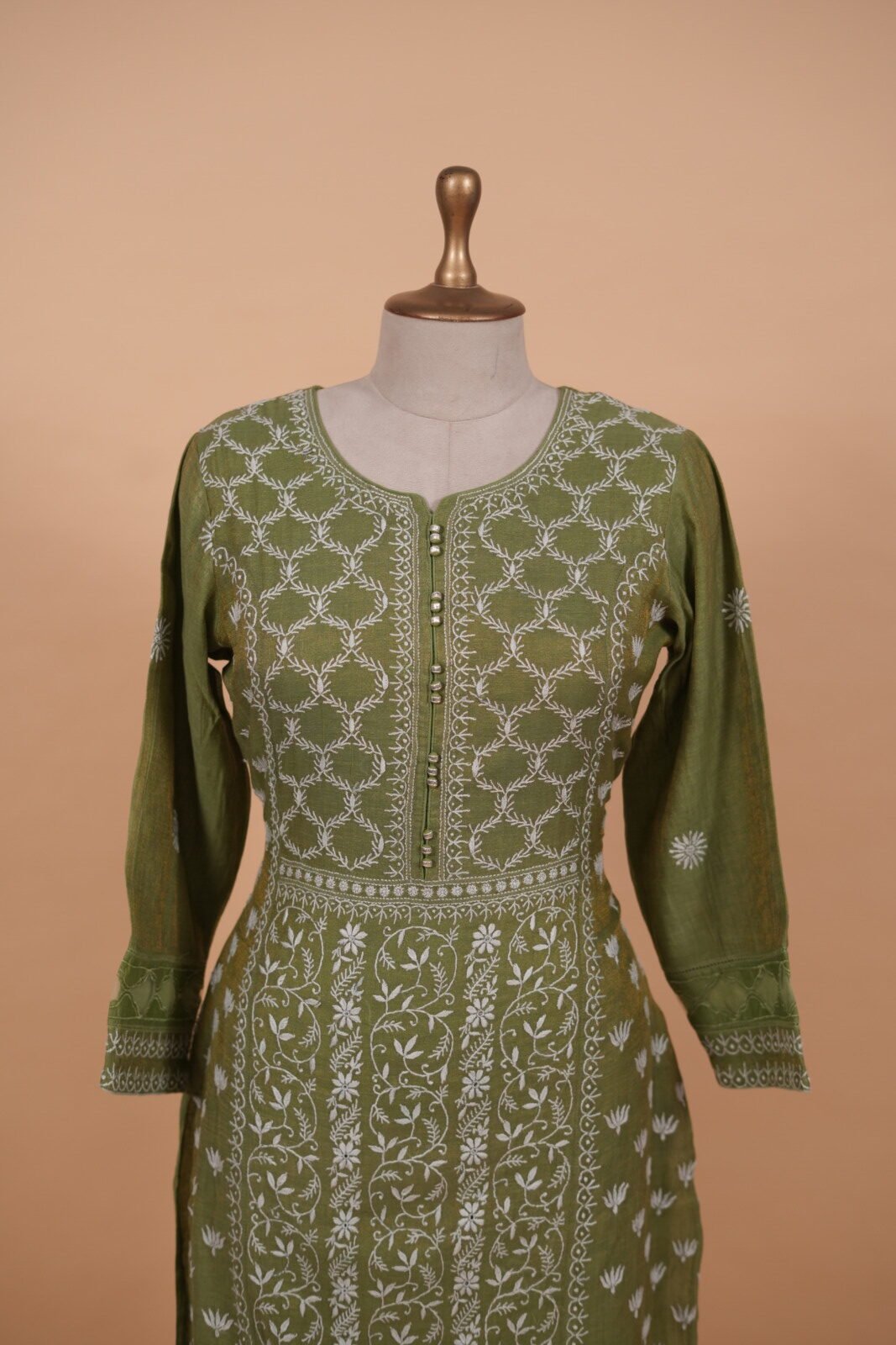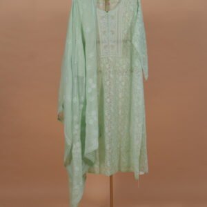 Green Coimbatore Cotton Chikankari Suit Set – 3 Pc Stitched Ethnic Wear
