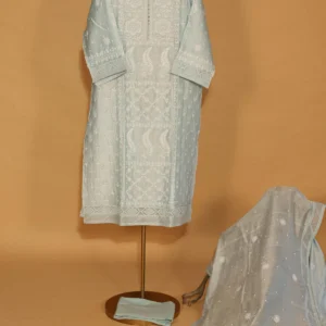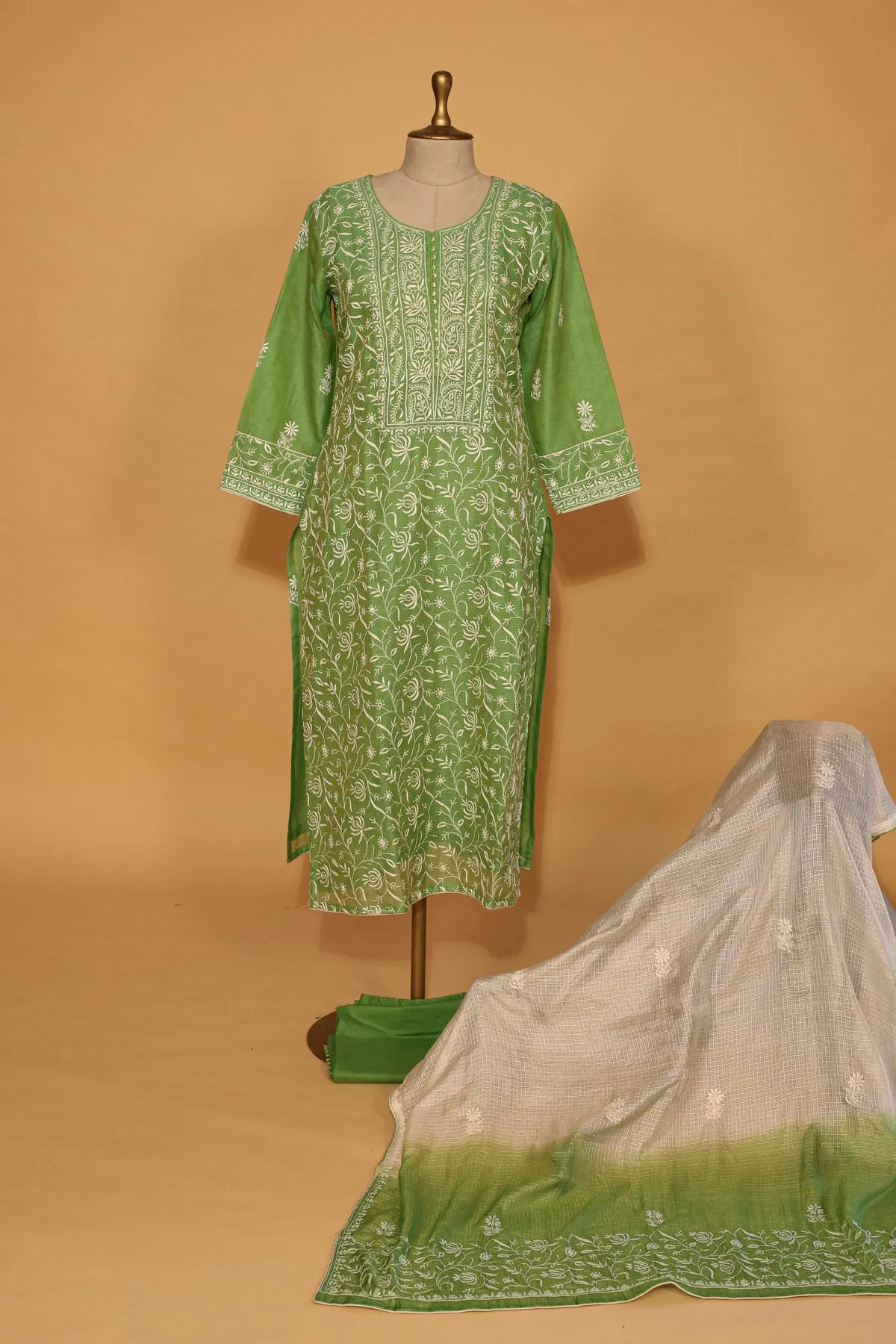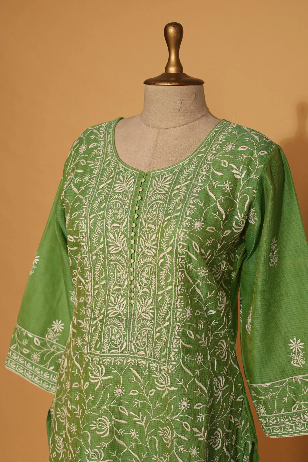 Green Coimbatore Cotton Chikankari Suit Set – 3 Pc Stitched Ethnic Wear