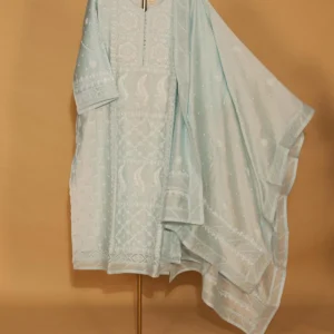 The refreshing green shade exudes elegance, while handmade chikankari embroidery with ghaspatti work adds a traditional and sophisticated touch. Ideal for cultural events, festive gatherings, or casual celebrations, this suit offers a perfect blend of comfort and style.