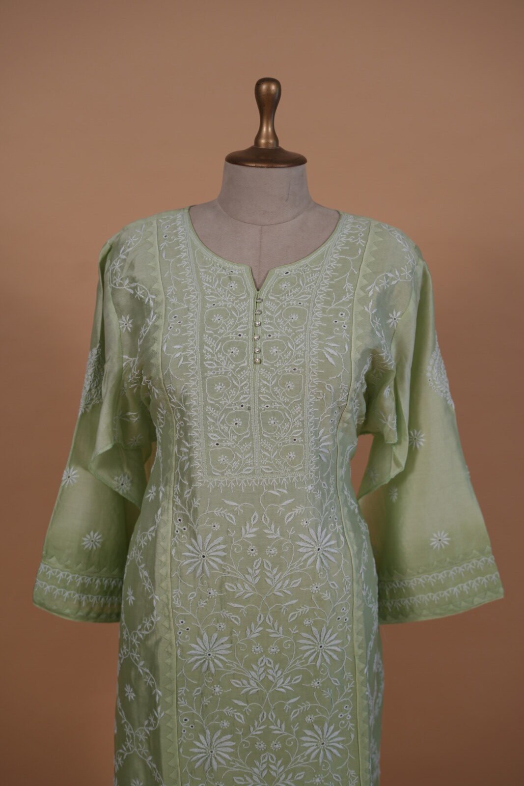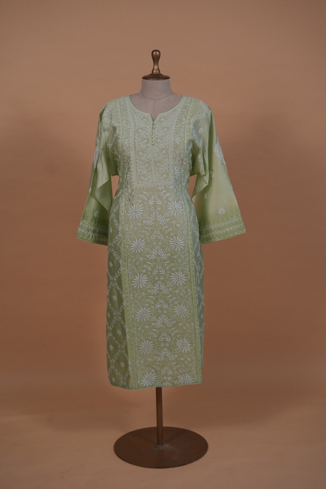 Green shaded Kota suit with Tapechi and Ghaspatti embroidery