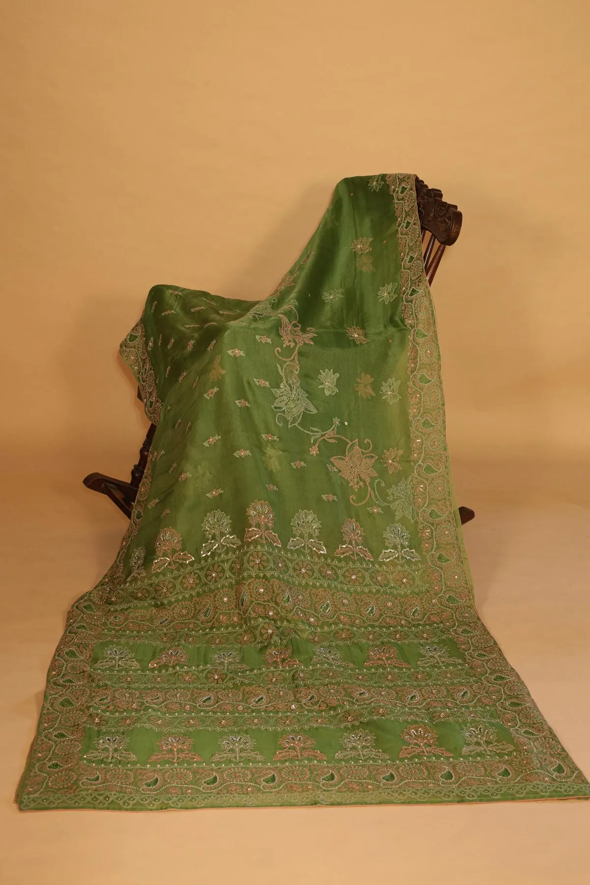 Tags: Festive silk saree, Green silk organza saree, Heavy work saree, Party Wear Saree, Traditional Indian saree