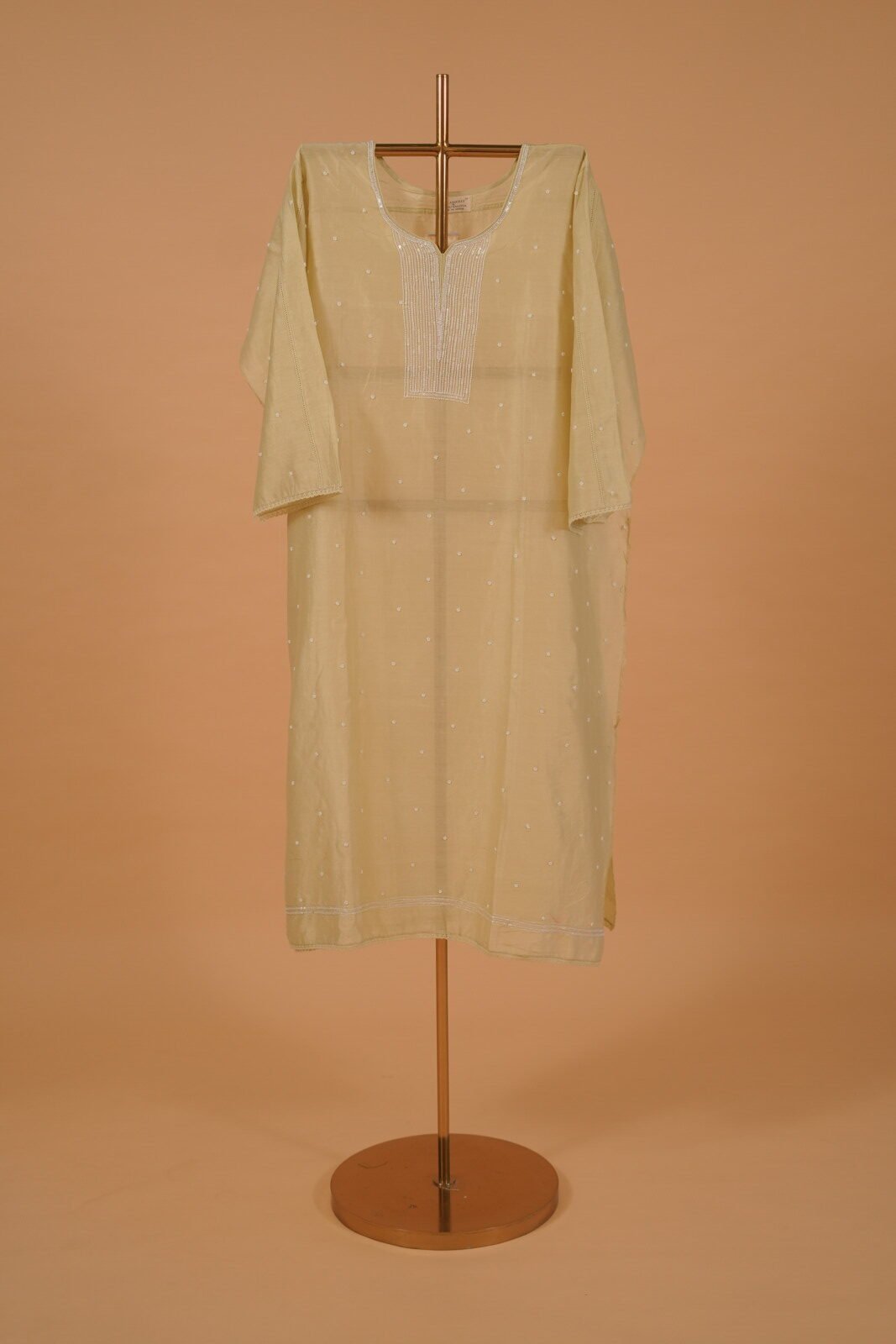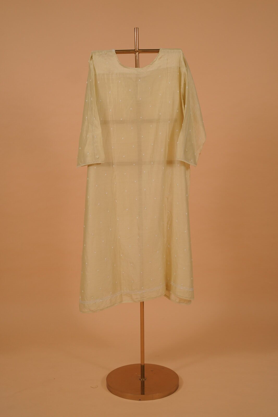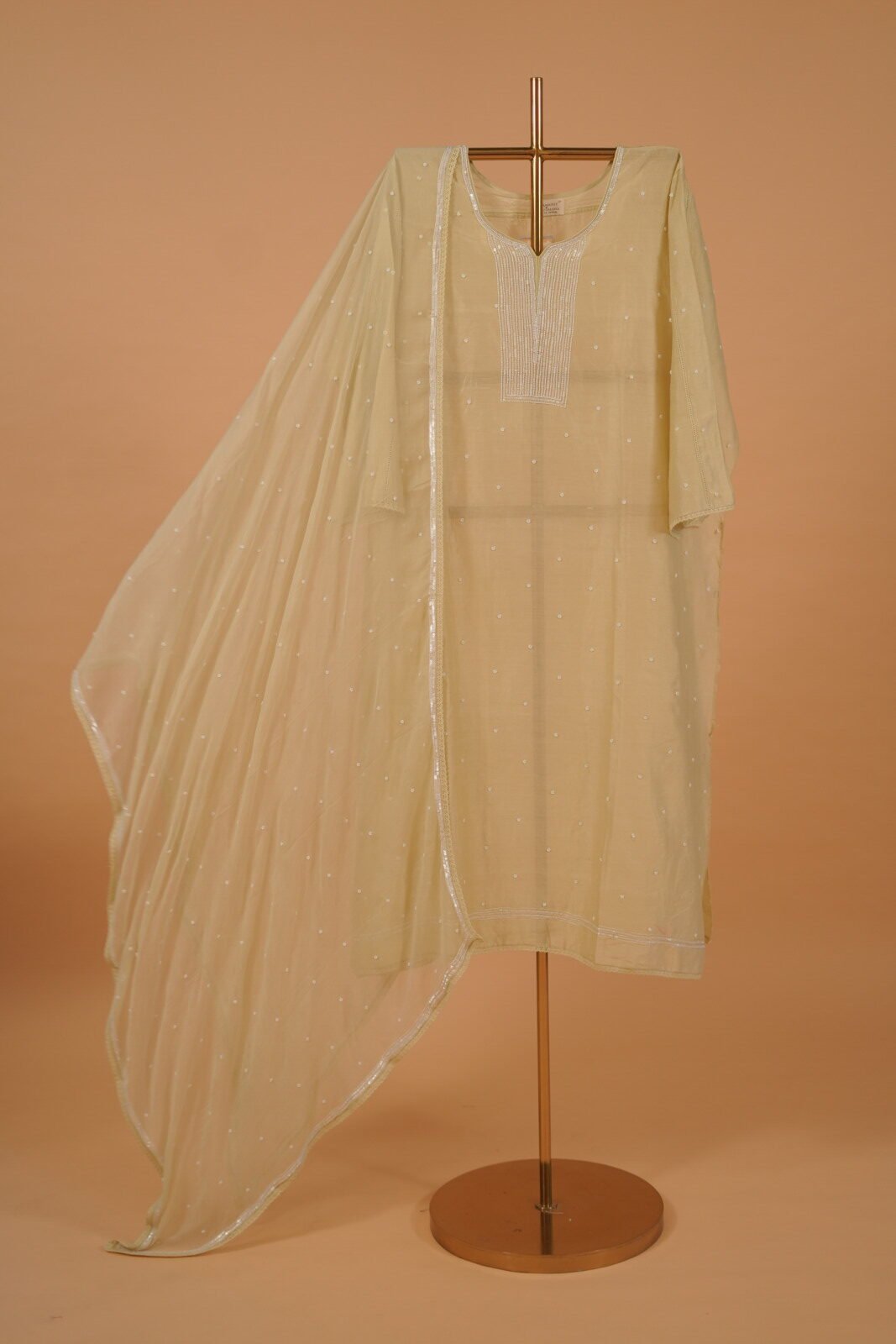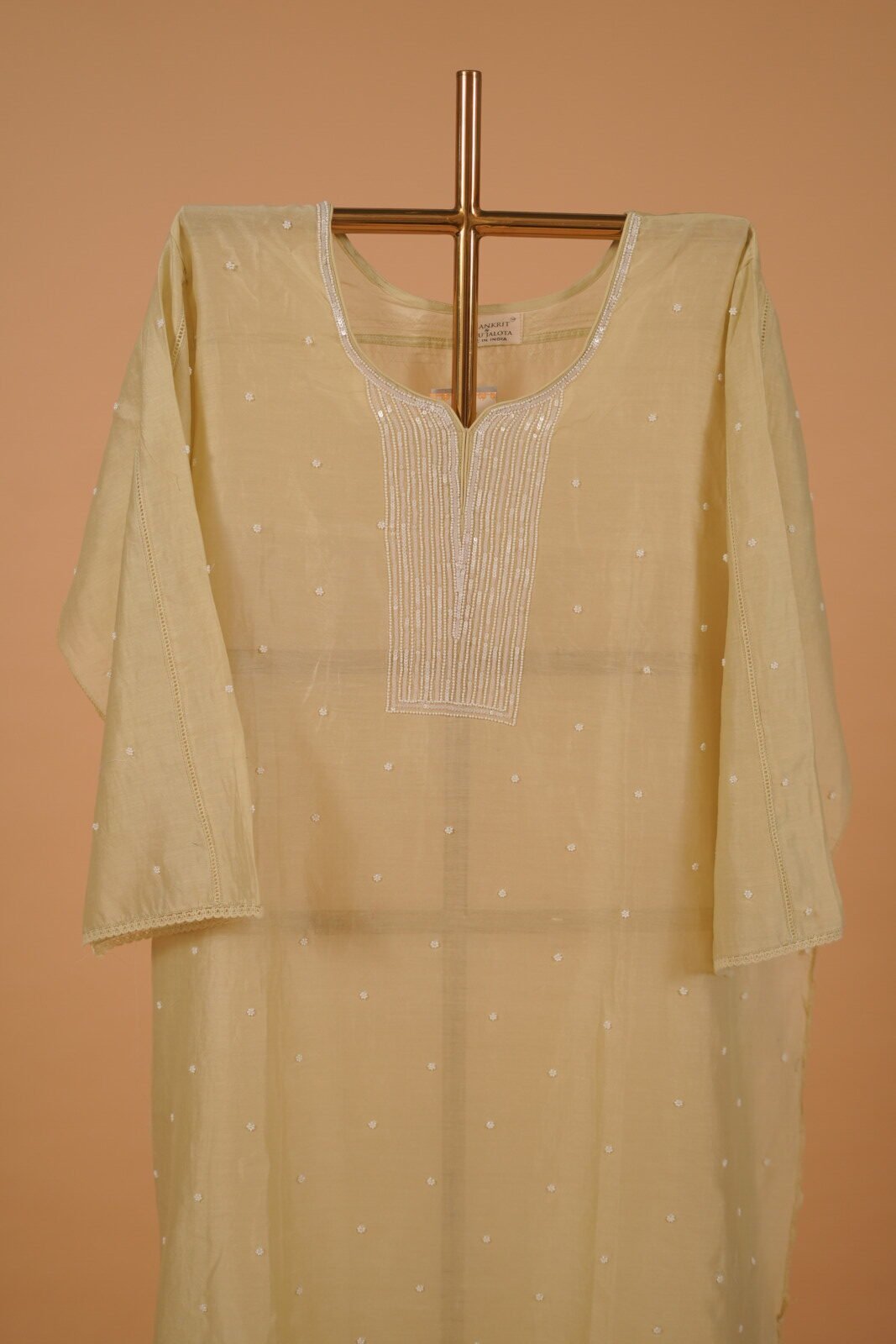 Lime Yellow Chanderi Silk Chikankari Suit Set with Sequins Work – 3 Pc