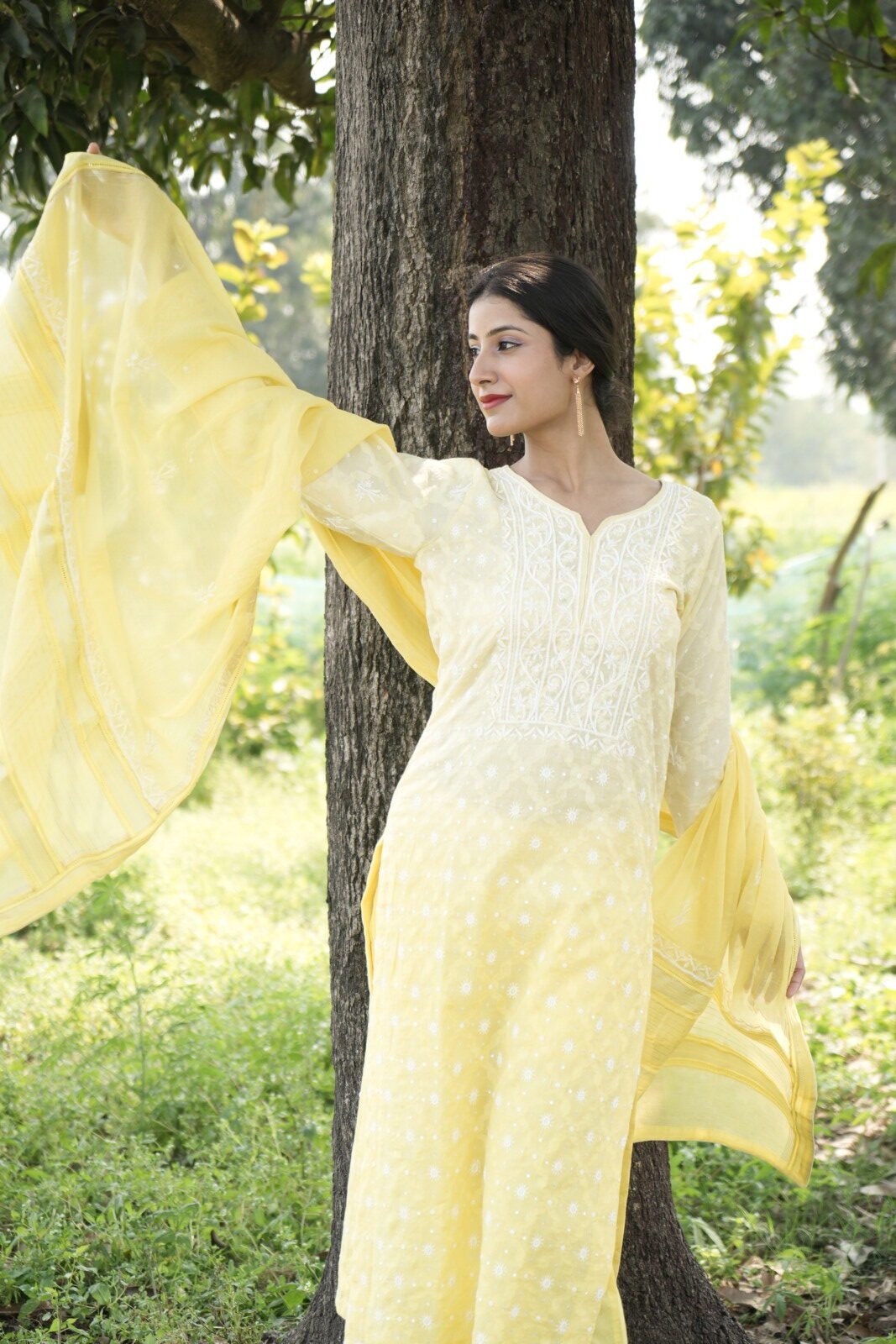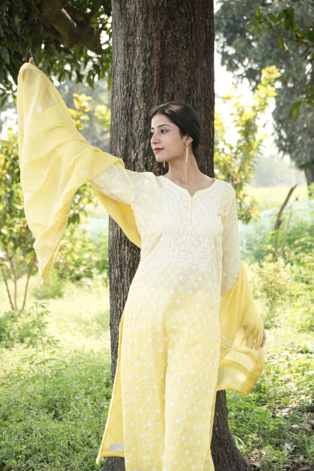 Lime Yellow Chikankari Embroidered Suit Set