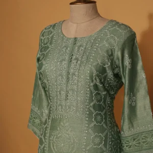 Mint Green Organdy Suit Set with Mukaish Work – 3 Pc Stitched