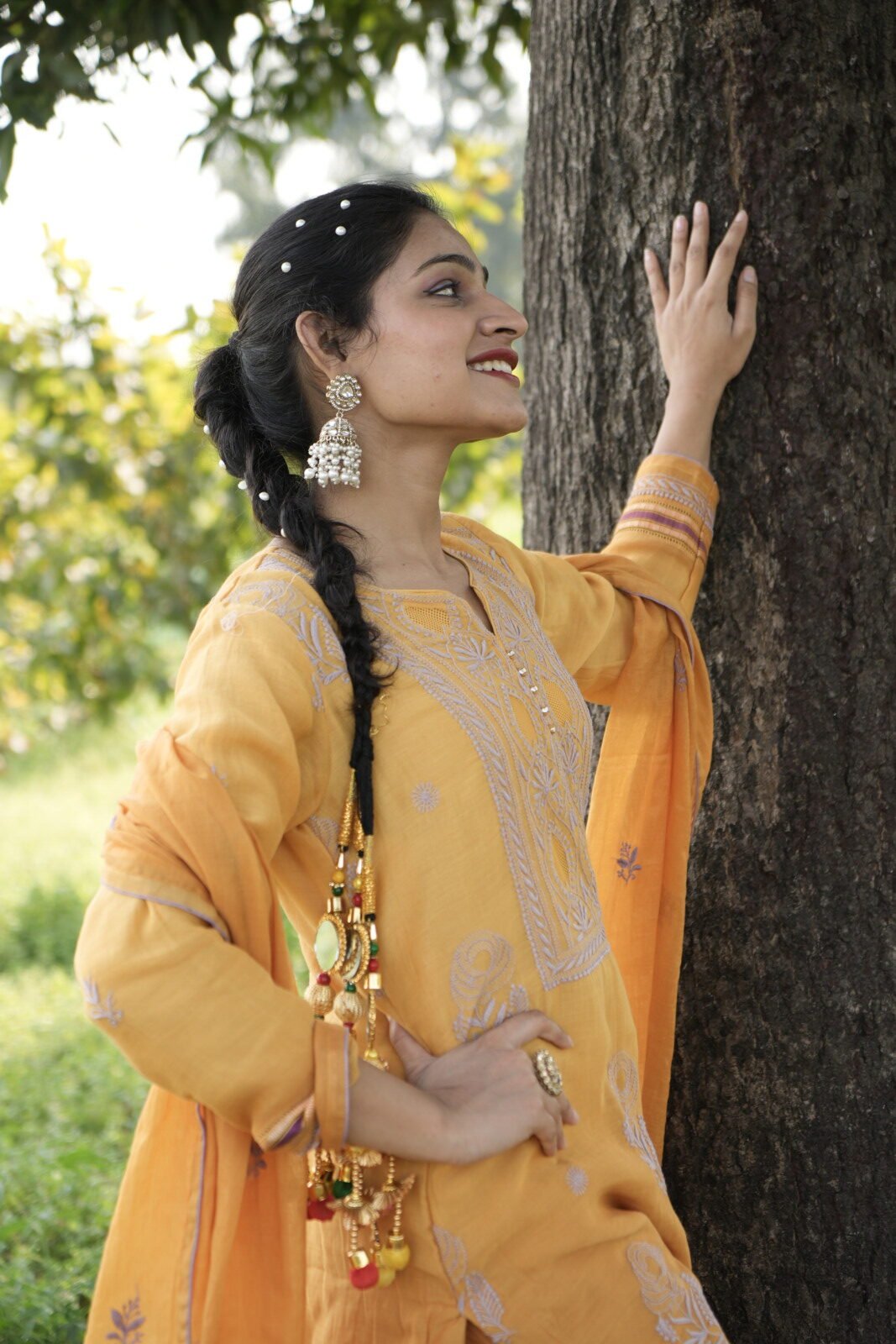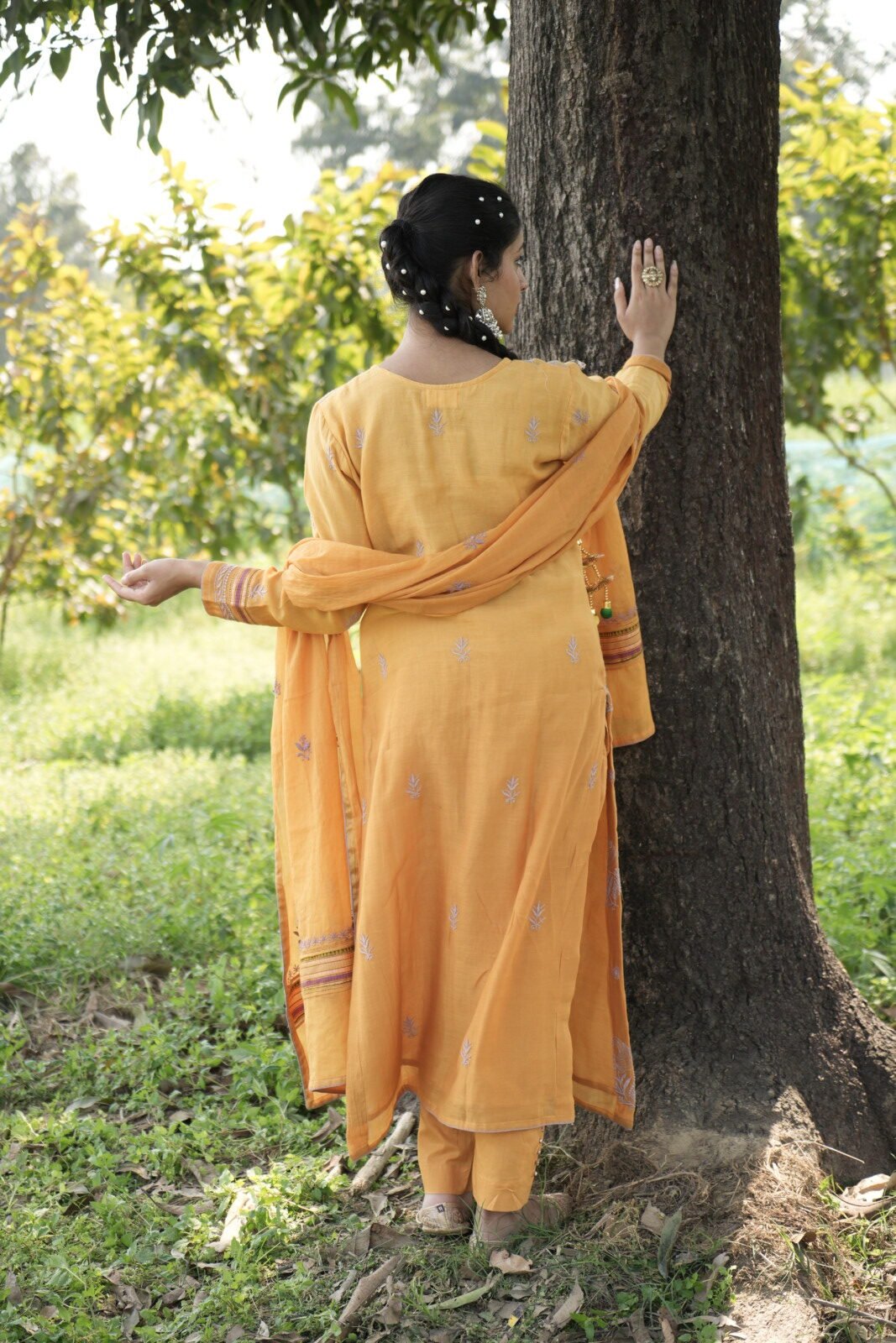 Mustard Yellow Chikankari Embroidered Suit Set
