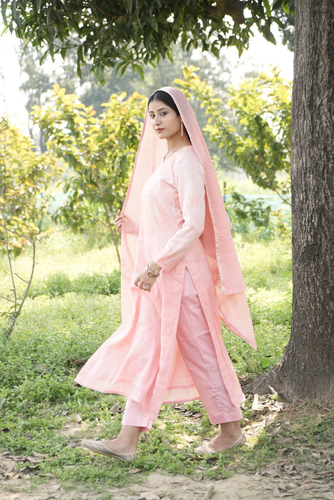 Pastel Pink Chikankari Embroidered Suit Set