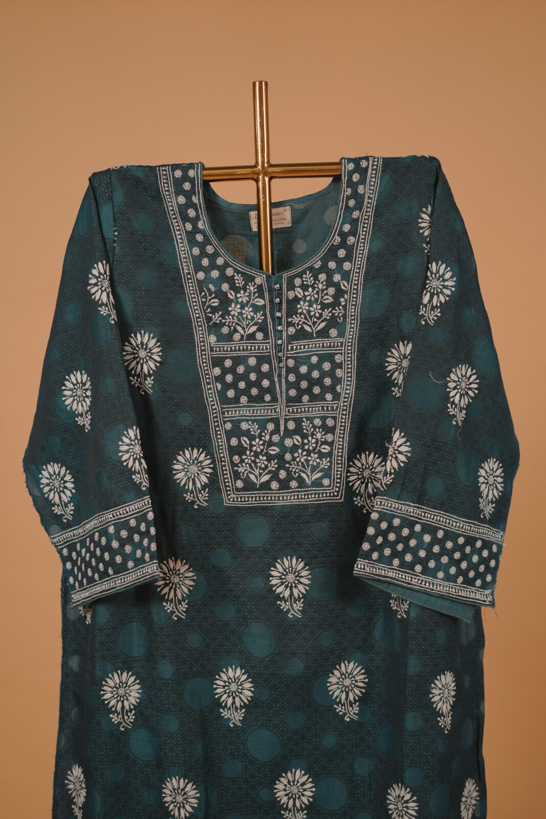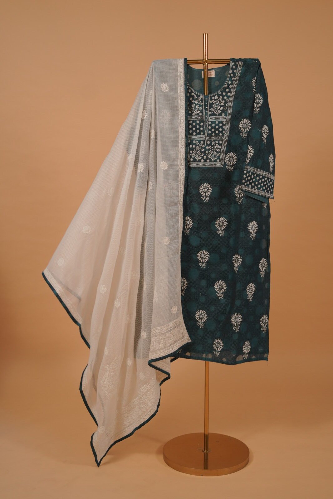 Peacock blue semi-stitched embroidered salwar suit set 4pcs