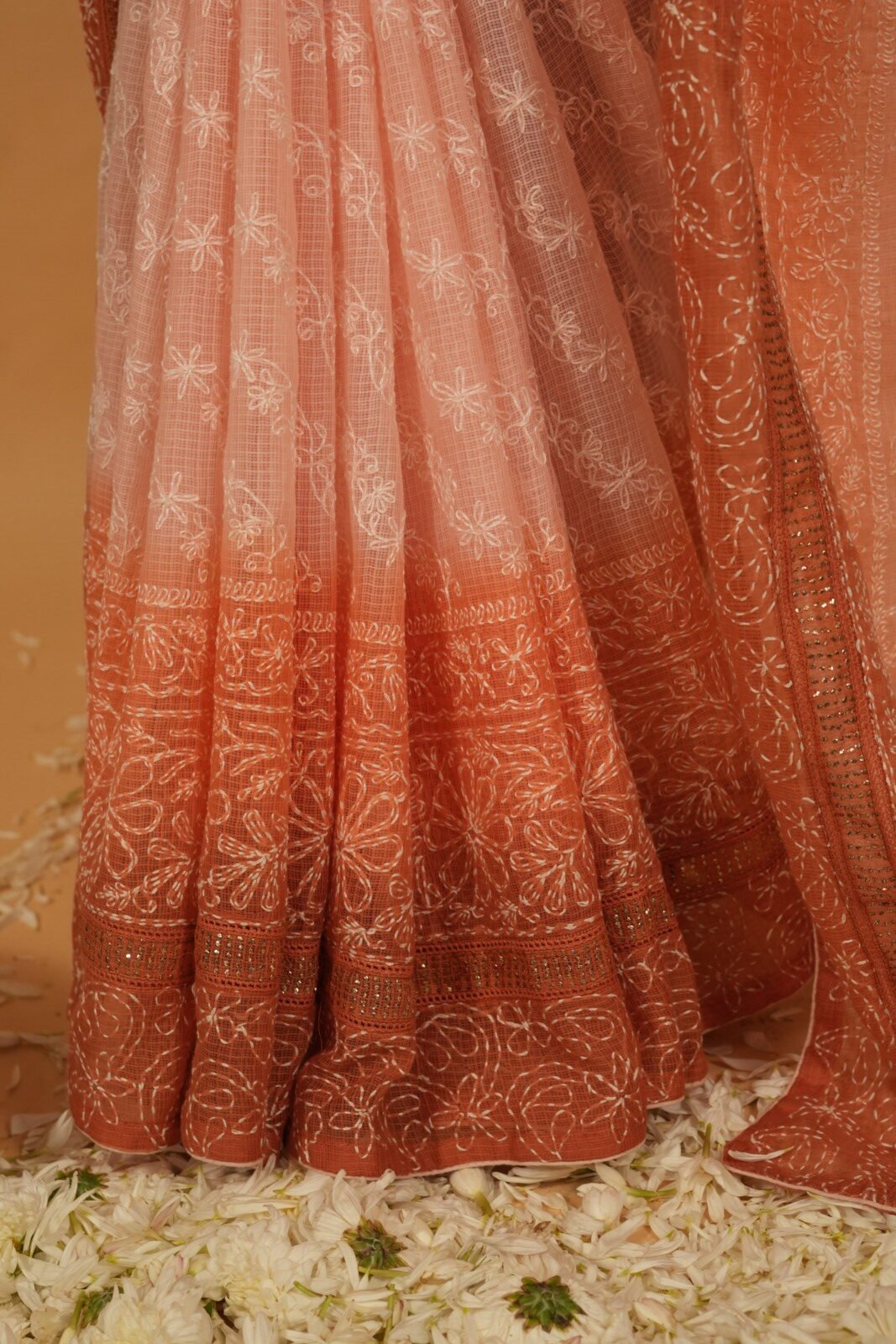 Pink hombre shaded kota saree with heavy embroidery work and mukaish border