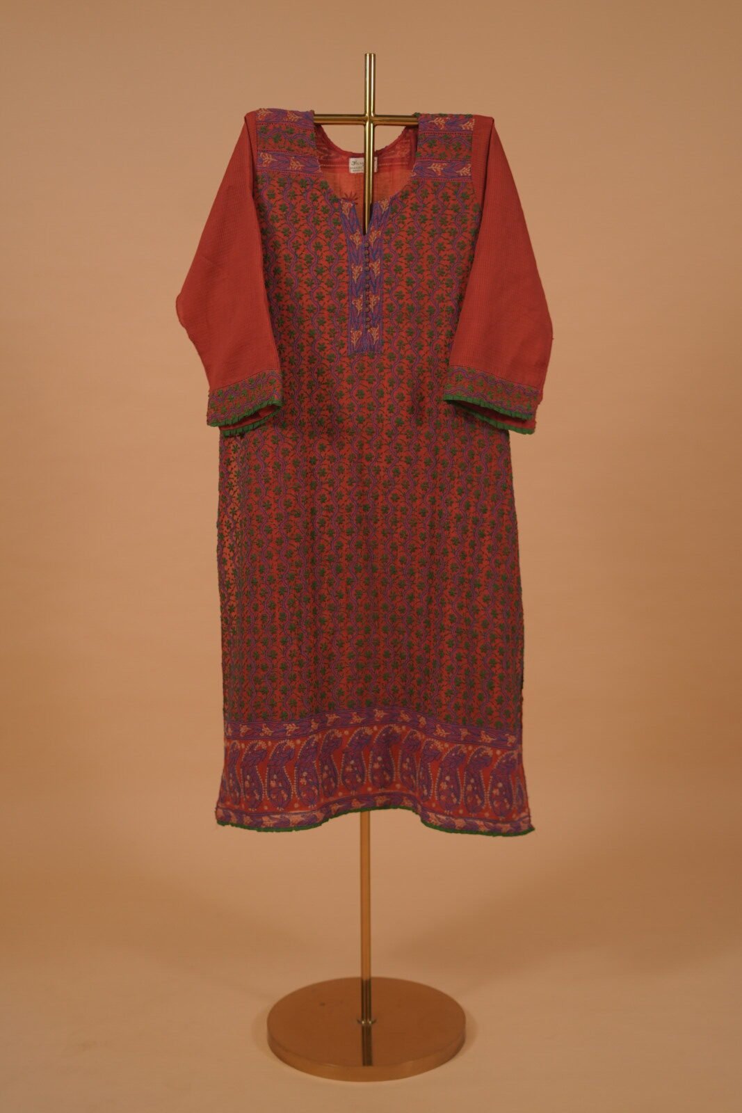 Red Colored embroidered Salwar set with matching dupatta and bottom. Lining is also attached.
