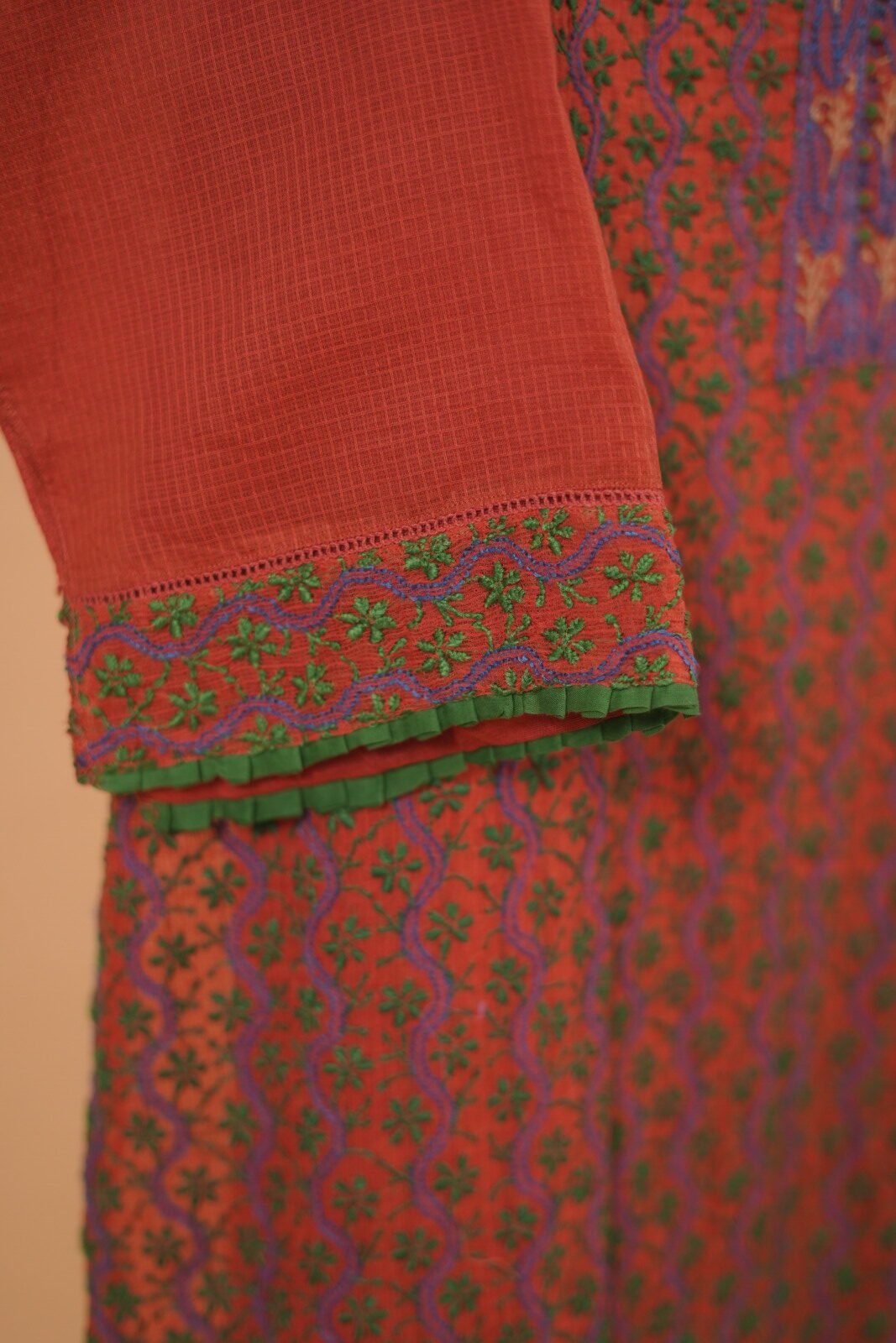 Red Mulchanderi suit set with embroidered work (4pcs)