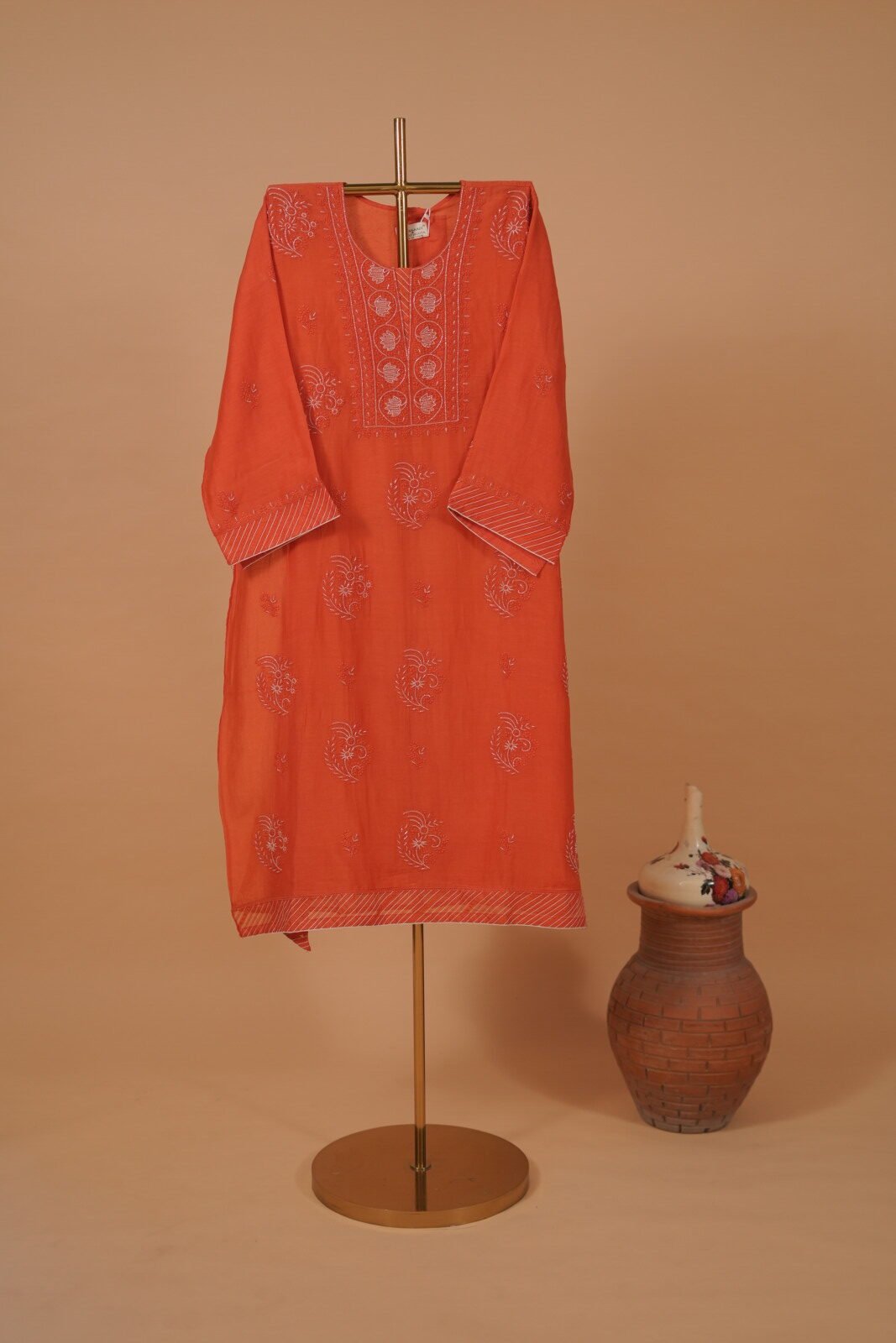 Orange Kota Ghaspatti Suit Set 4pcs
