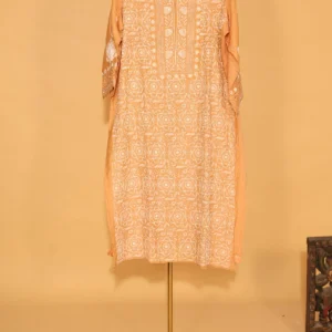 This unstitched red organza suit set is exquisitely adorned with bakhiya, ghaspatti, and fanda embroidery, showcasing the intricate detailing of chikankari craftsmanship. The luxurious silk organza fabric provides a sheer yet structured drape, allowing you to design it into a sophisticated outfit that fits your style.