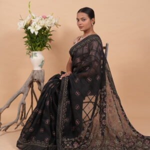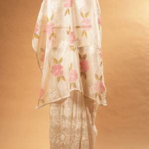 White check organza saree with multicolor embroidery Original price was: ₹19,250.00.Current price is: ₹16,362.50.
