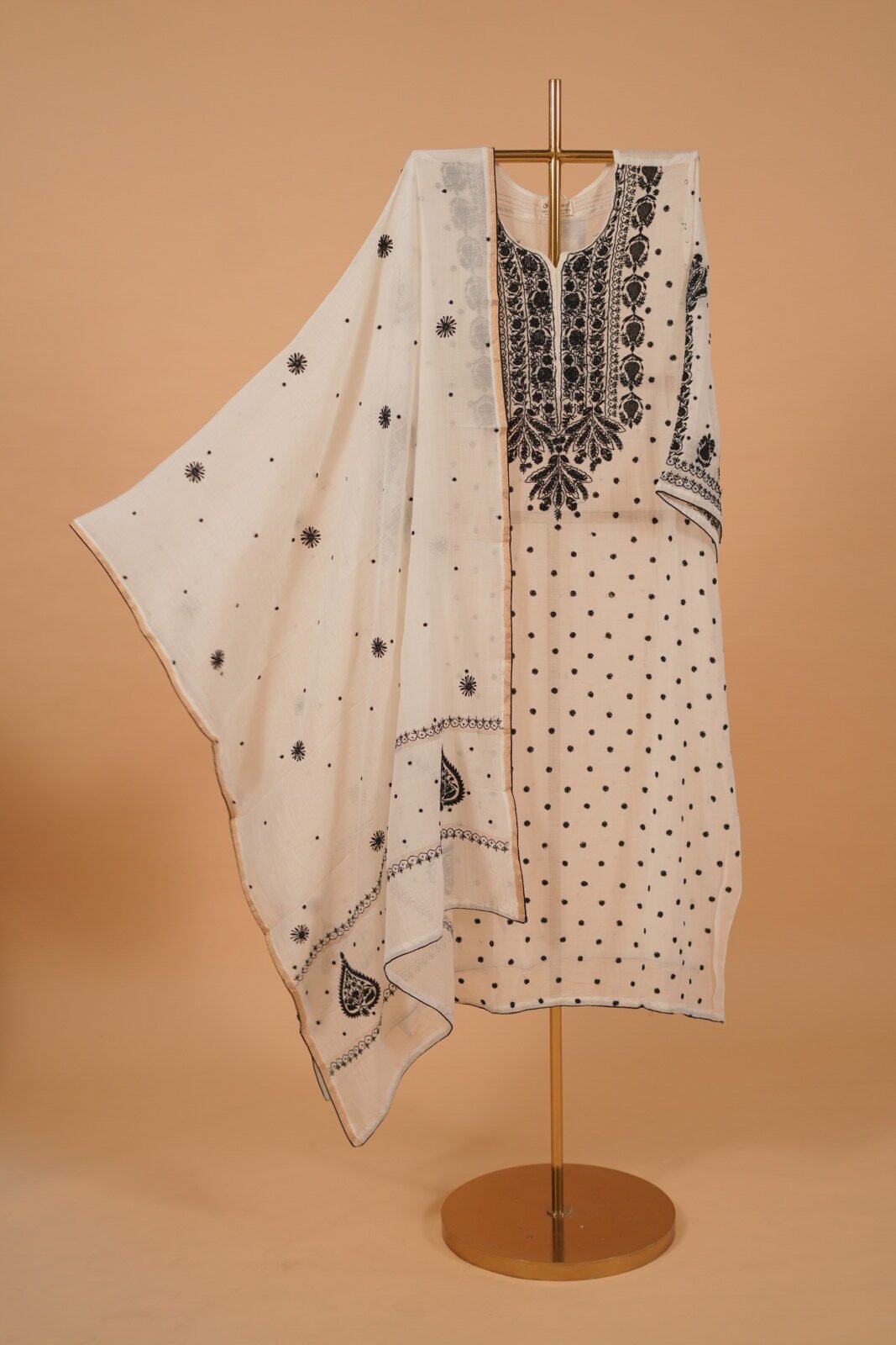 White Salwar suit set with handwork embroidery in black