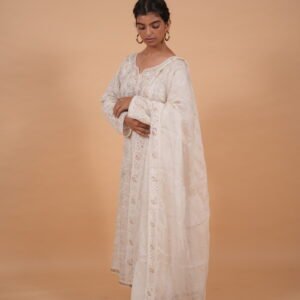 Patti Work Organza Suit Set – 3 Pc Semi-Stitched Elegant Ethnic Wear