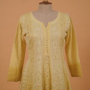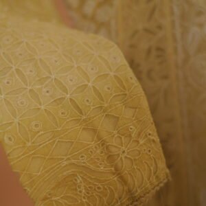 Yellow Anarkali in cotton voil with all over cutwork