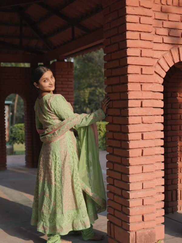 Light Green Cotton Voil Anarkali | Handcrafted Ethnic Wear